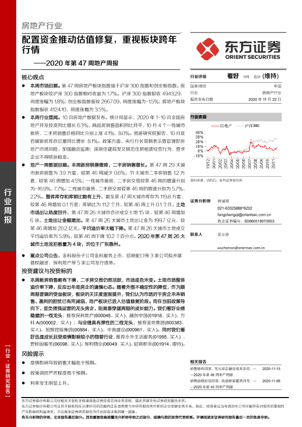 【东方证券】【20201122】2020年第47周地产周报:配置资金推动估值修复,重视板块跨年行情-16页