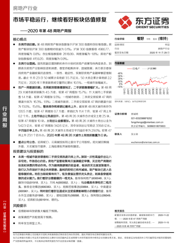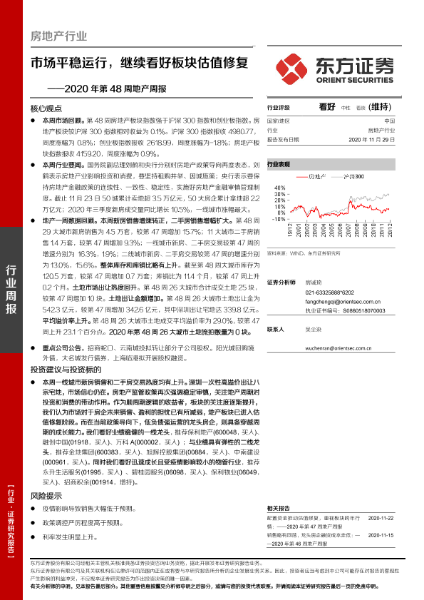 【东方证券】【20201129】2020年第48周地产周报-市场平稳运行,继续看好板块估值修复-16页
