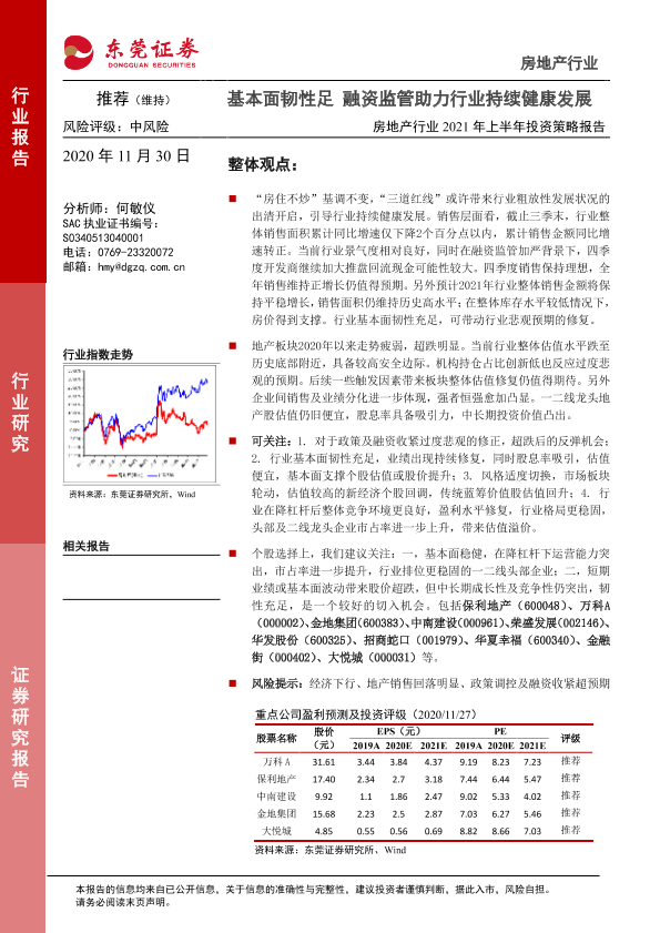 【东莞证券】【20201130】房地产行业2021年上半年投资策略报告:基本面韧性足 融资监管助力行业持续健康发展-16页