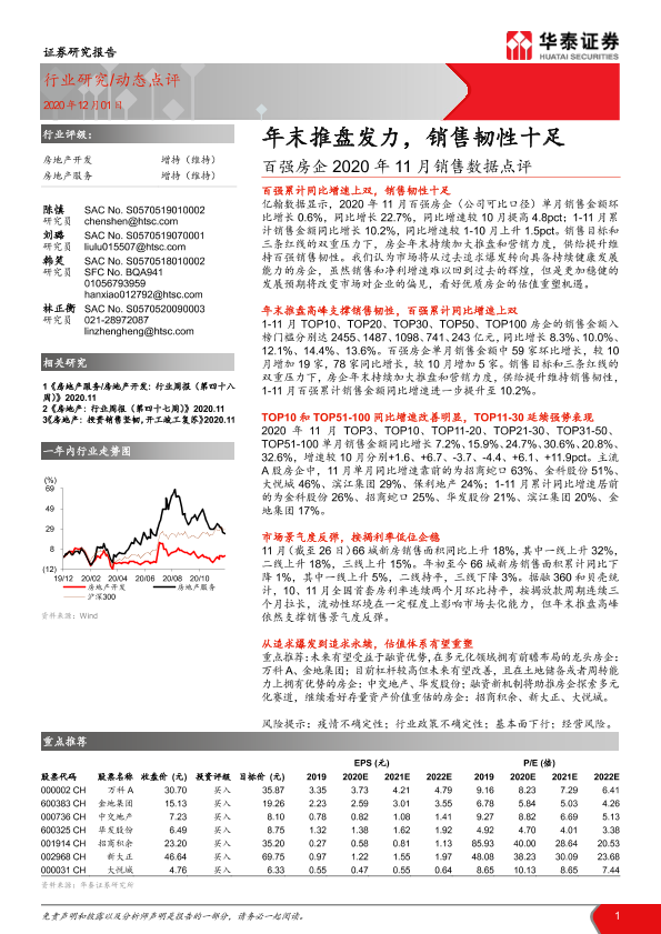 【华泰证券】【20201201】百强房企2020年11月销售数据点评:年末推盘发力,销售韧性十足-8页