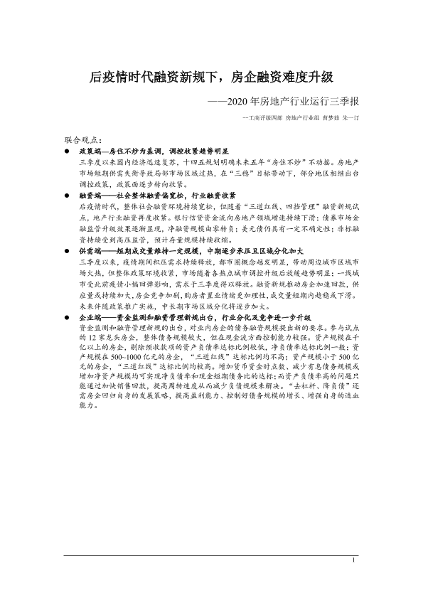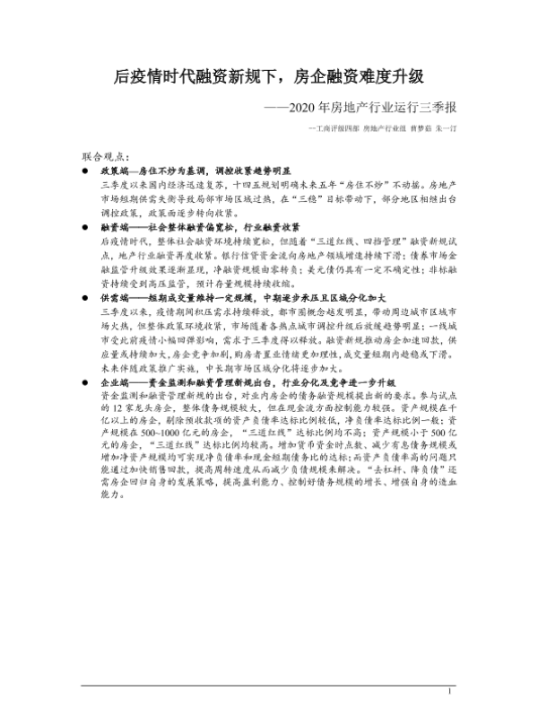 【联合资信】【20201209】2020年房地产行业运行三季报:后疫情时代融资新规下,房企融资难度升级-14页