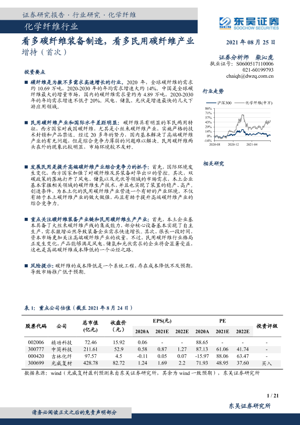 【东吴证券】【20210825】化学纤维行业:看多碳纤维装备制造,看多民用碳纤维产业-21页