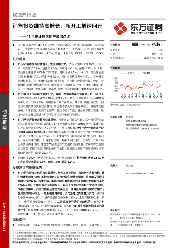 【东方证券】【20201216】11月统计局房地产数据点评-销售投资维持高增长,新开工增速回升-10页