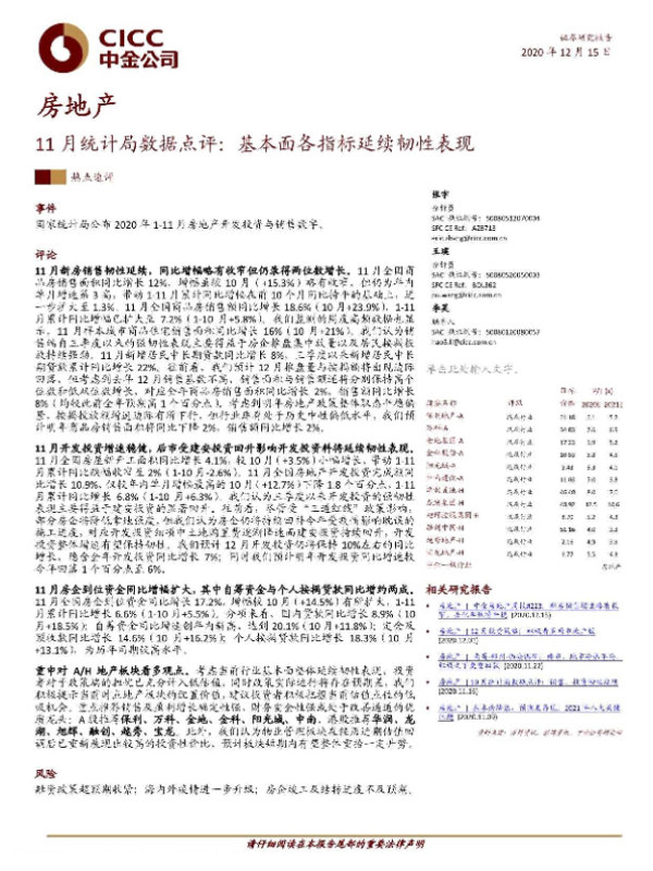 【中金公司】【20201215】11月统计局数据点评:基本面各指标延续韧性表现-11页