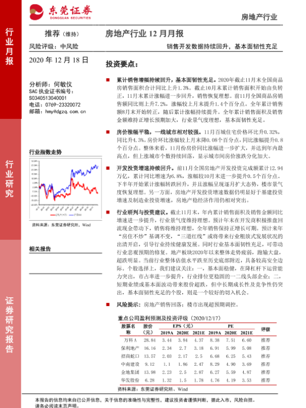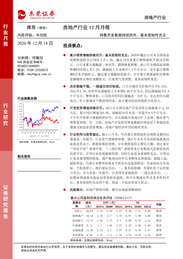 【东莞证券】【20201218】房地产行业12月月报:销售开发数据持续回升,基本面韧性充足-12页