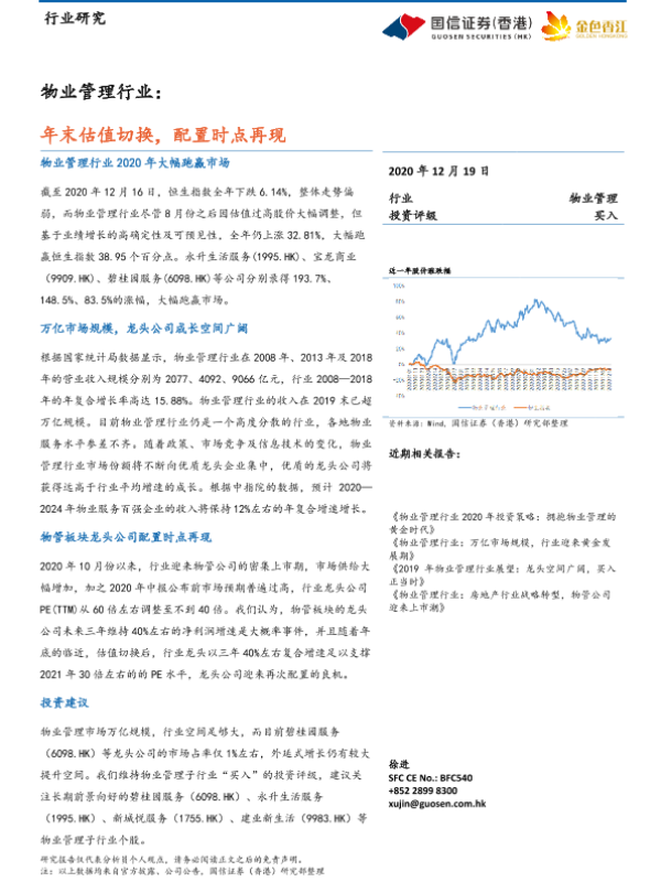 【国信证券(香港)】【20201219】物业管理行业:年末估值切换,配置时点再现-6页