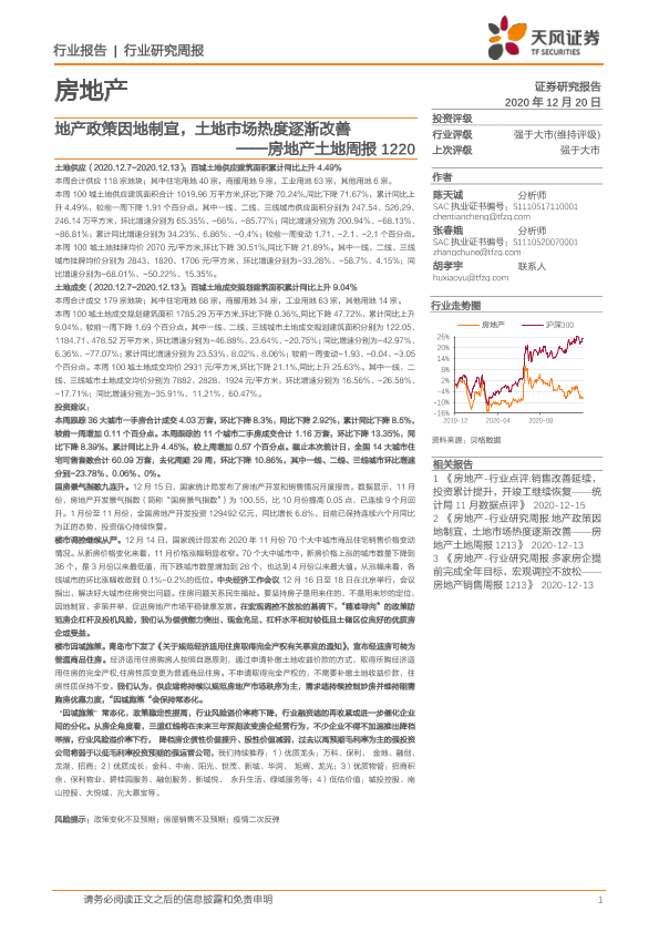 【天风证券】【20201220】地产政策因地制宜,土地市场热度逐渐改善-10页