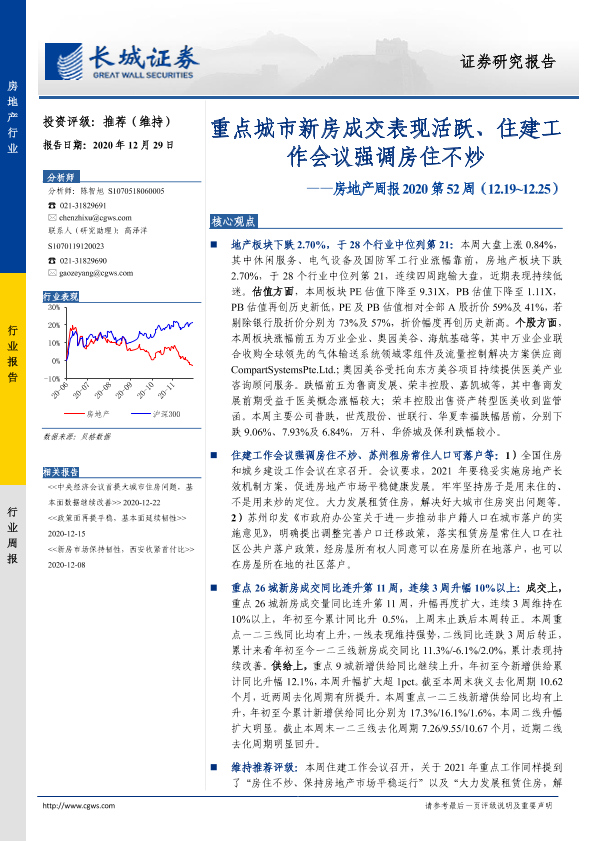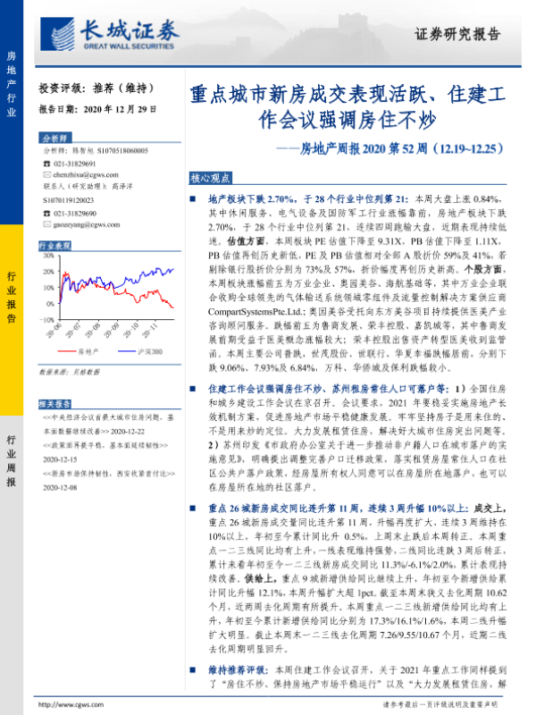 【长城证券】【20201229】重点城市新房成交表现活跃、住建工作会议强调房住不炒-15页