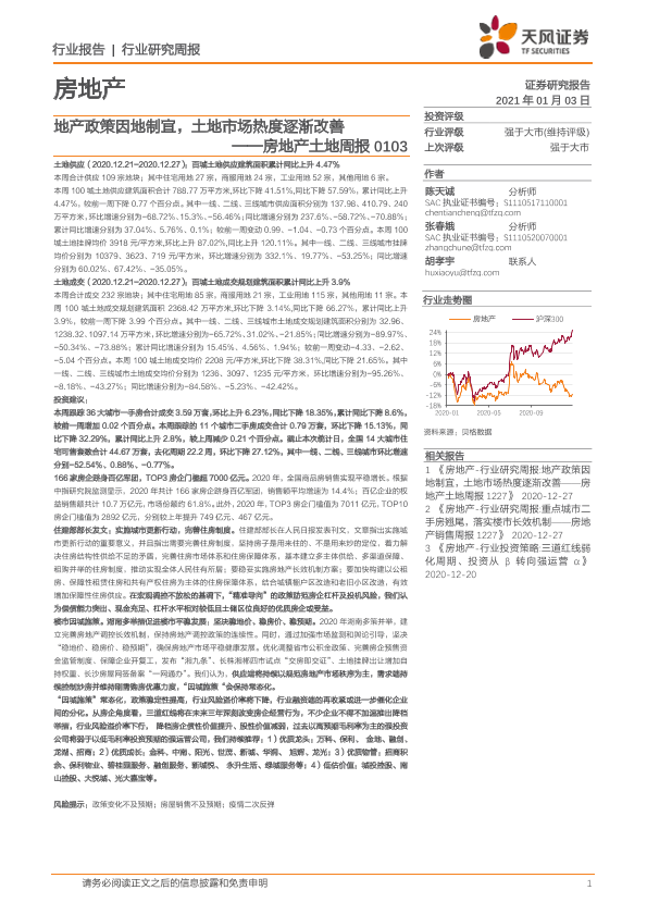 【天风证券】【20210103】地产政策因地制宜,土地市场热度逐渐改善-10页