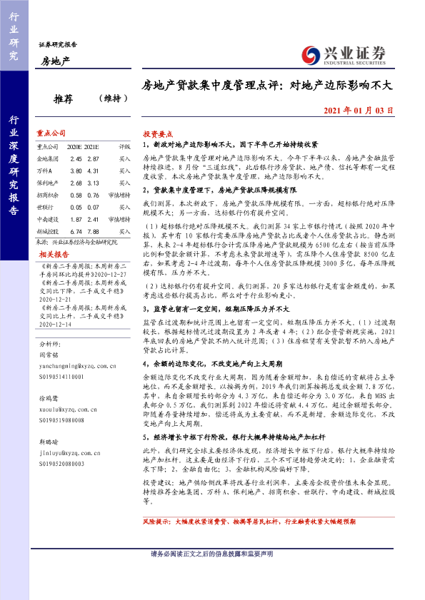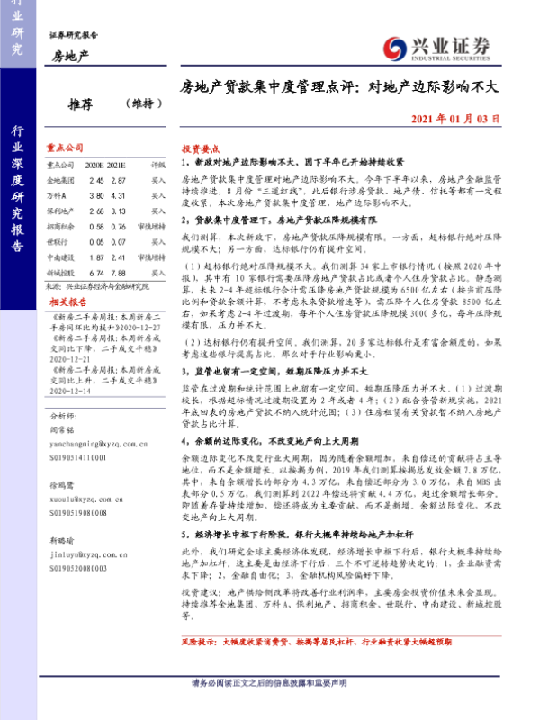 【兴业证券】【20210103】房地产贷款集中度管理点评:对地产边际影响不大-6页