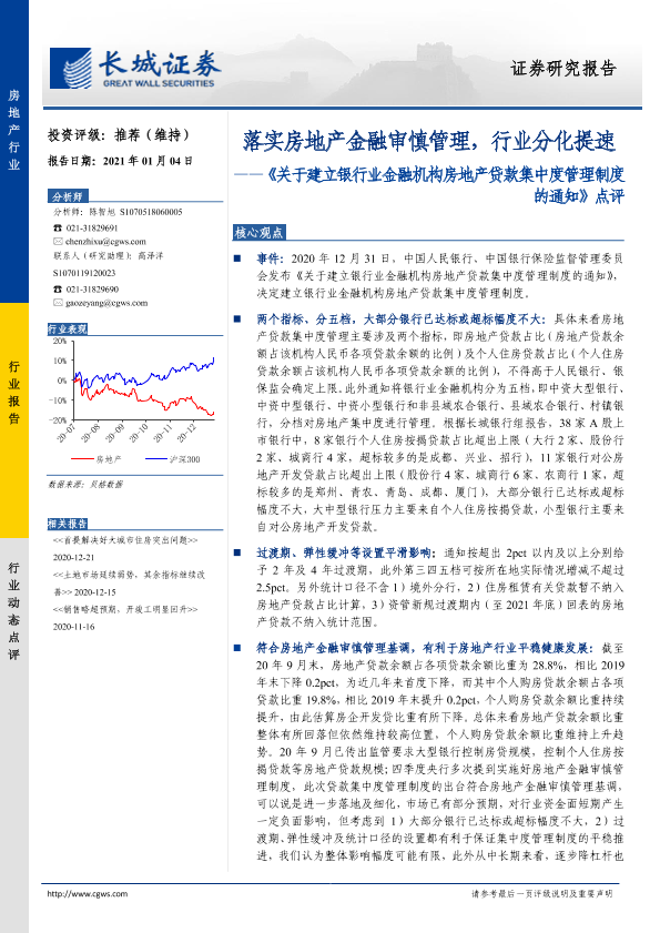 【长城证券】【20210104】关于建立银行业金融机构房地产贷款集中度管理制度的通知点评-6页