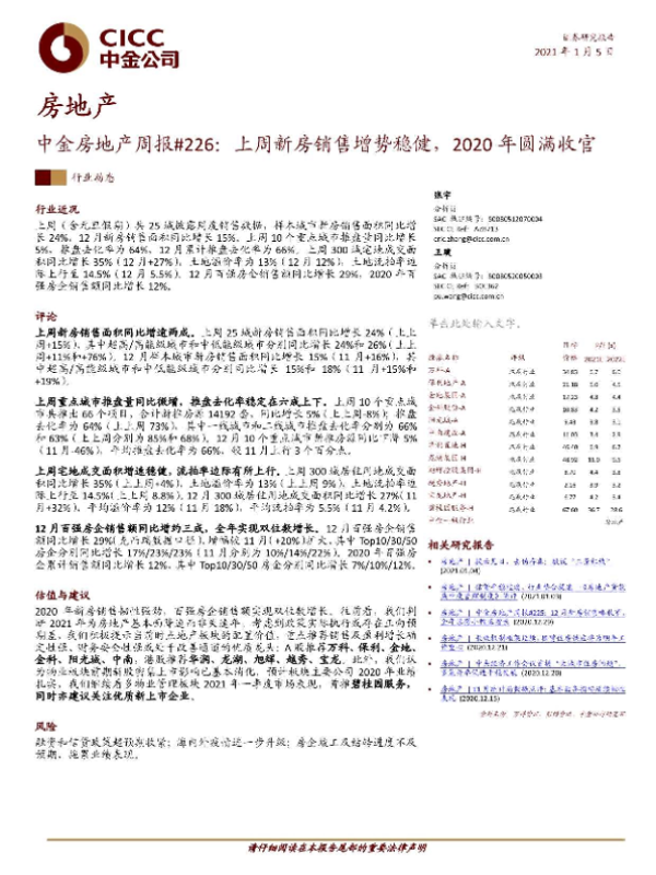 【中金公司】【20210105】中金房地产周报#226:上周新房销售增势稳健,2020年圆满收官-12页