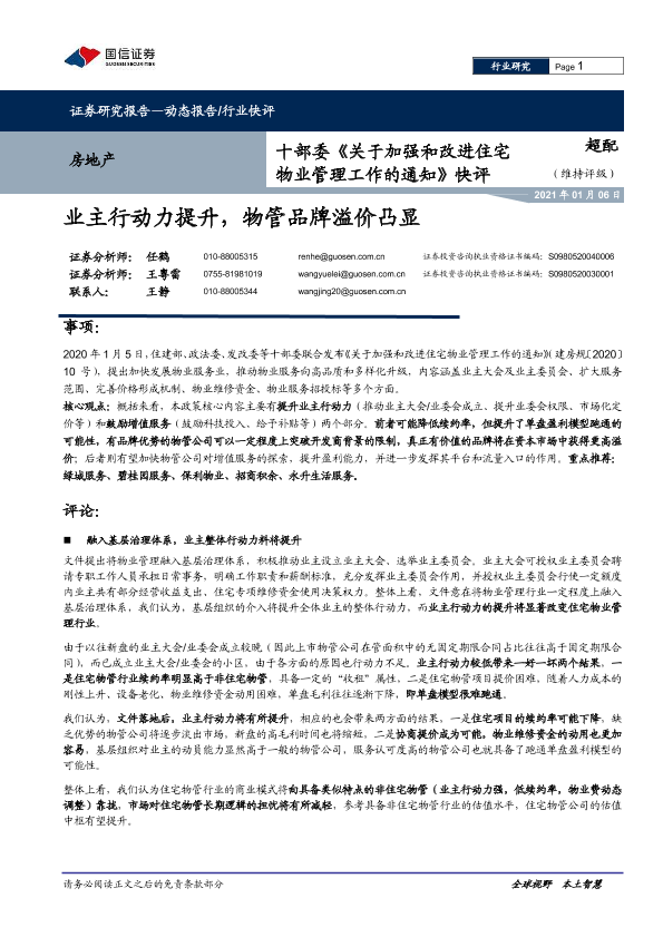 【国信证券】【20210106】关于加强和改进住宅物业管理工作的通知快评-9页