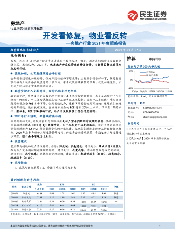 【民生证券】【20210107】房地产行业2021年度策略报告:开发看修复,物业看反转-17页