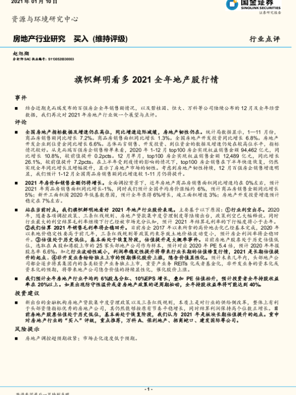 【国金证券】【20210110】房地产行业研究:旗帜鲜明看多2021全年地产股行情-6页