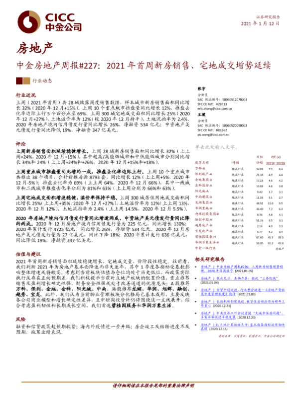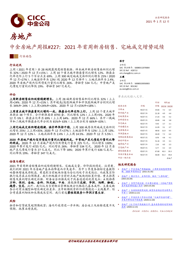 【中金公司】【20210112】2021年首周新房销售、宅地成交增势延续-12页