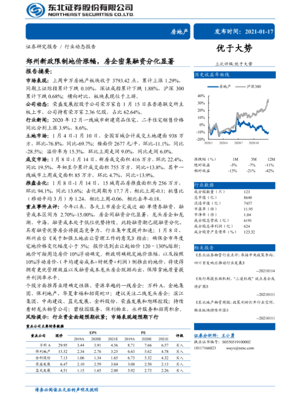 【东北证券】【20210117】郑州新政限制地价涨幅,房企密集融资分化显著-31页