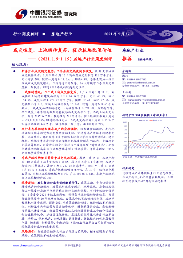 【银河证券】【20210117】房地产行业周度例评:成交恢复,土地端待复苏,提示板块配置价值-10页