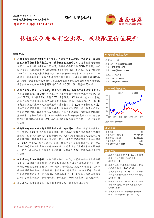【西南证券】【20210117】房地产行业周报:估值低位叠加利空出尽,板块配置价值提升-13页