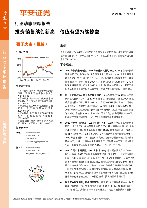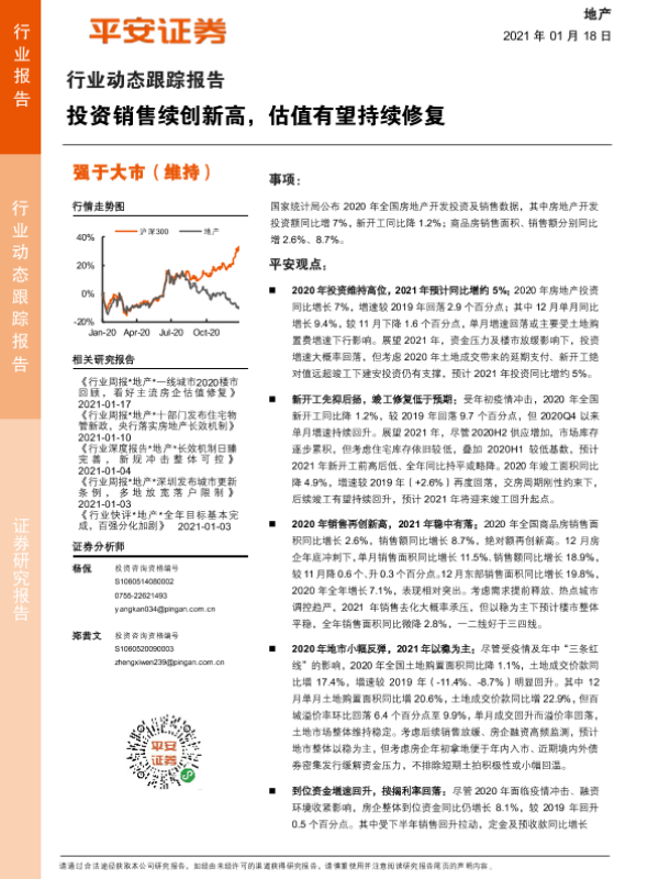 【平安证券】【20210118】地产行业动态跟踪报告:投资销售续创新高,估值有望持续修复-16页