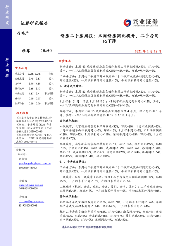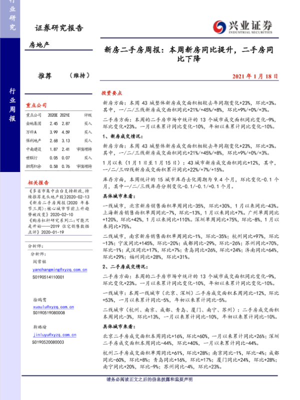 【兴业证券】【20210118】新房二手房周报:本周新房同比提升,二手房同比下降-26页