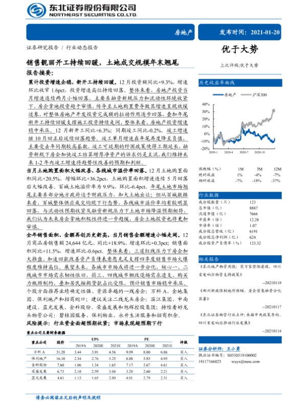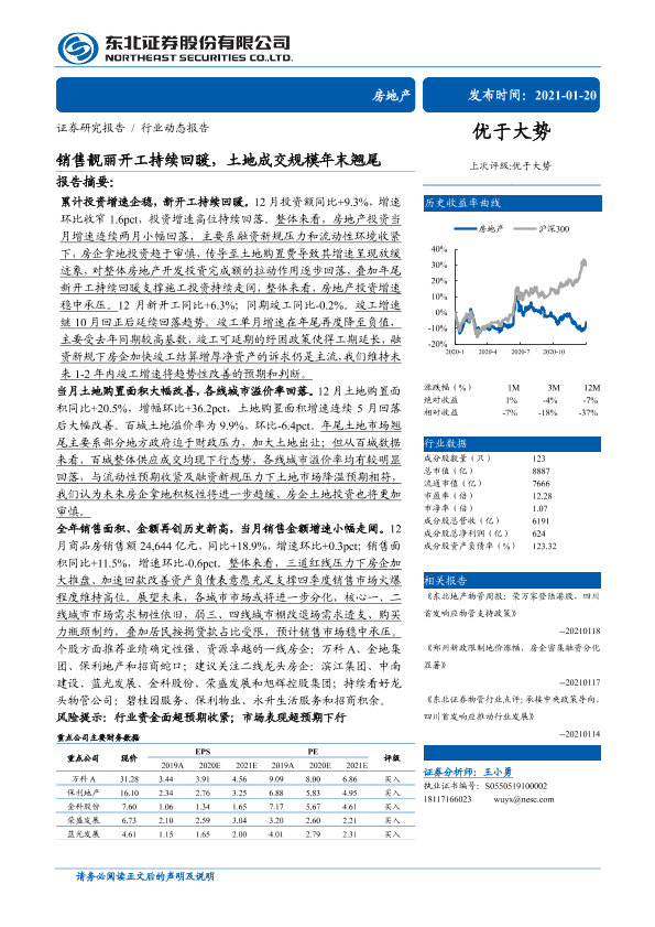 【东北证券】【20210120】销售靓丽开工持续回暖,土地成交规模年末翘尾-19页