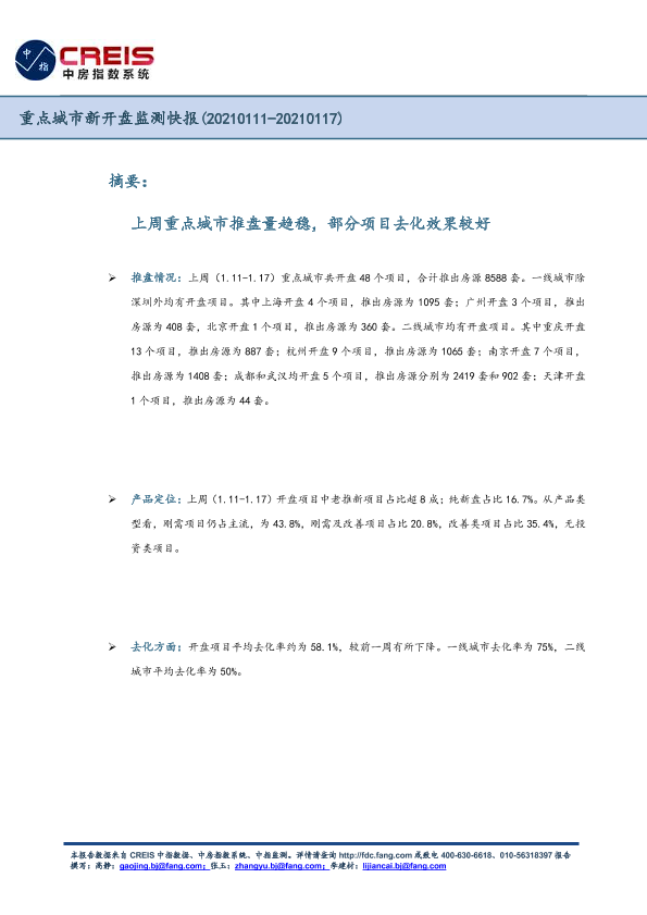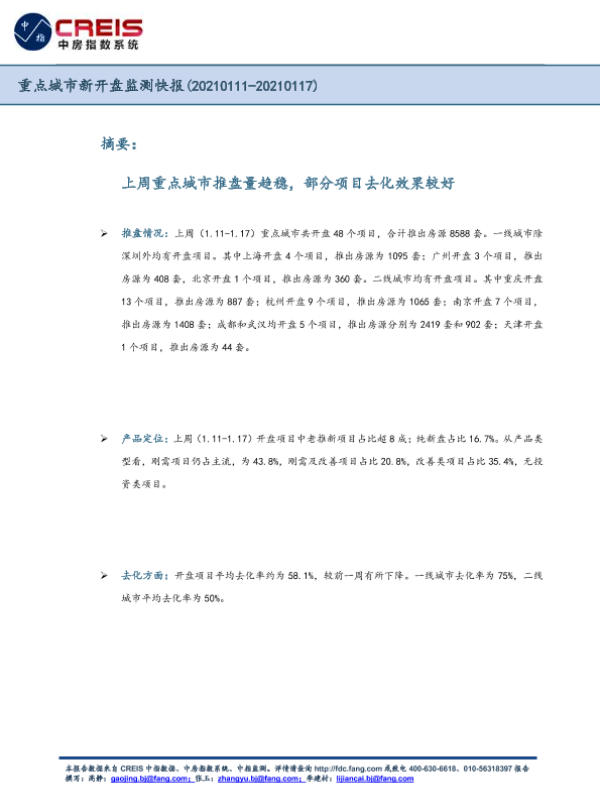 【中指研究院】【20210121】重点城市新开盘监测快报-4页