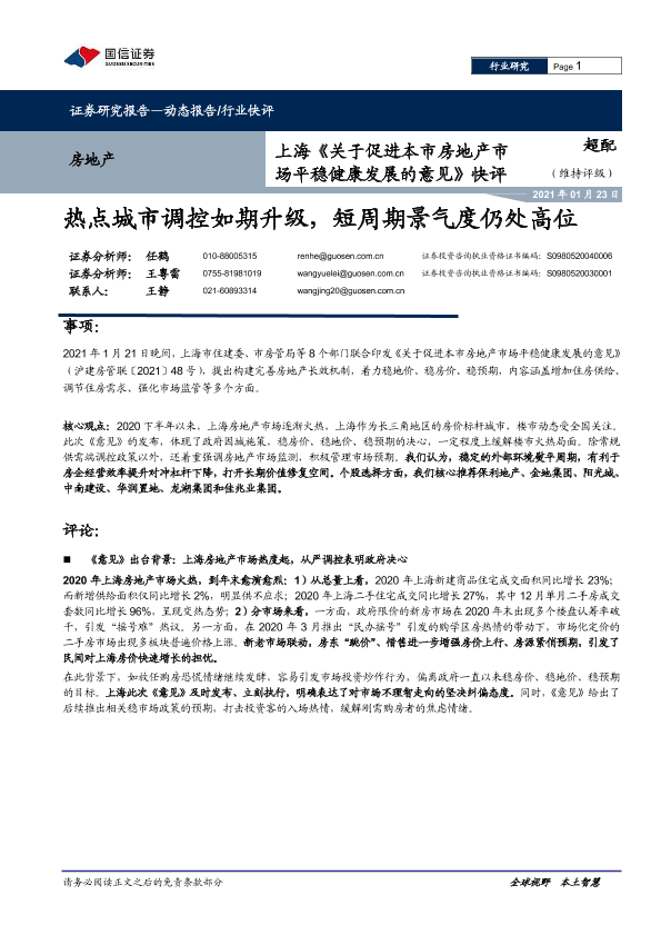 【国信证券】【20210123】关于促进本市房地产市场平稳健康发展的意见快评-7页
