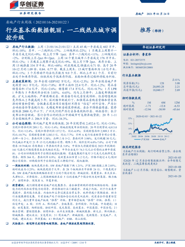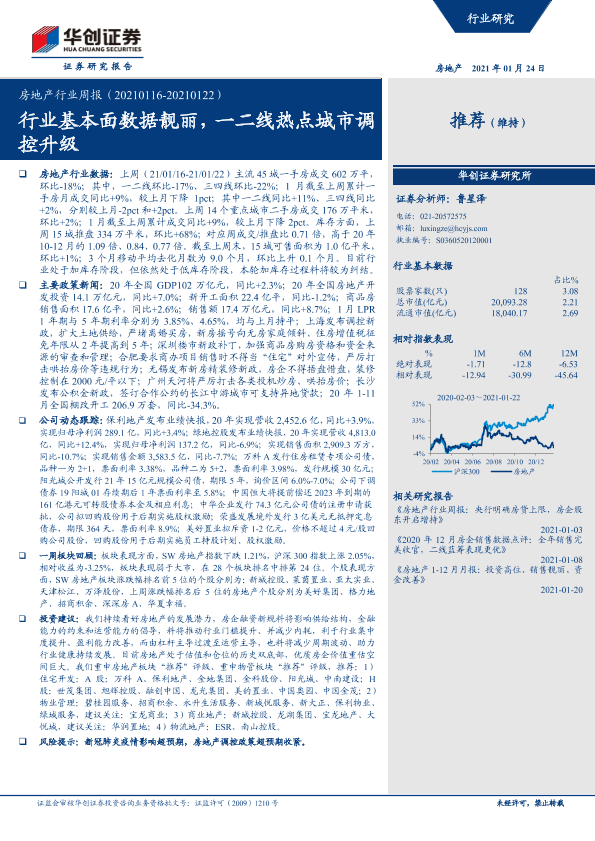 【华创证券】【20210124】房地产行业周报:行业基本面数据靓丽,一二线热点城市调控升级-21页