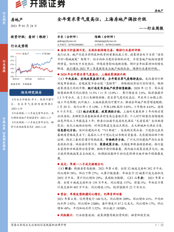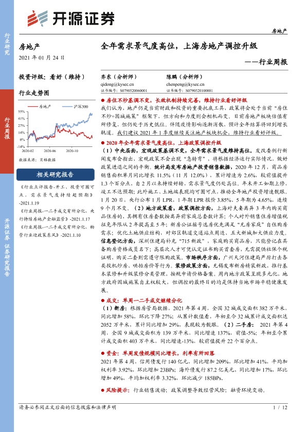 【开源证券】【20210124】房地产行业周报:全年需求景气度高位,上海房地产调控升级-12页