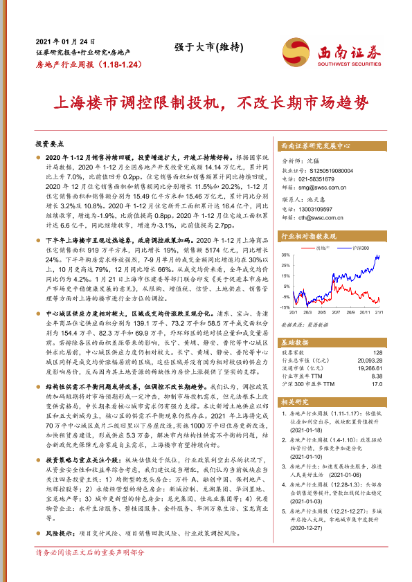 【西南证券】【20210124】房地产行业周报:上海楼市调控限制投机,不改长期市场趋势-14页