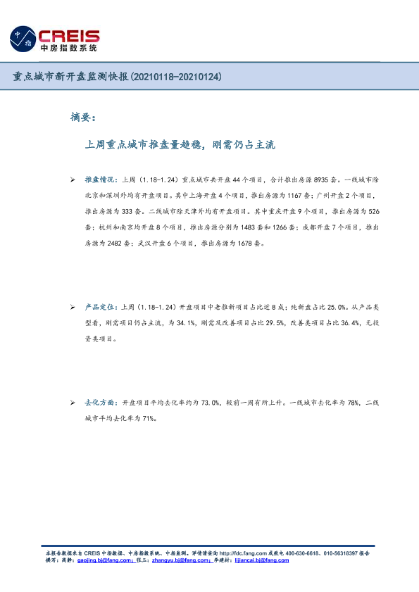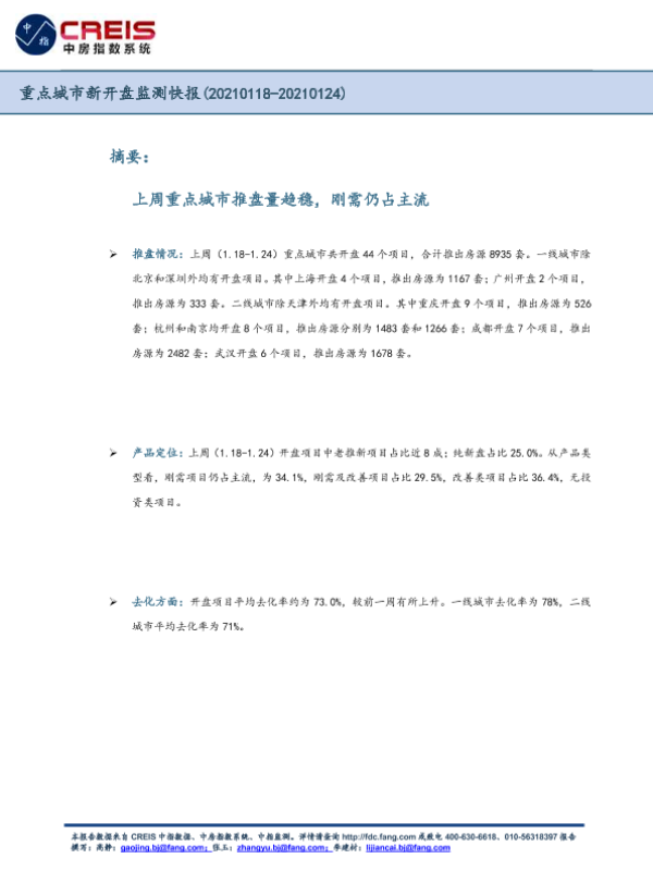 【中指研究院】【20210124】重点城市新开盘监测快报-4页