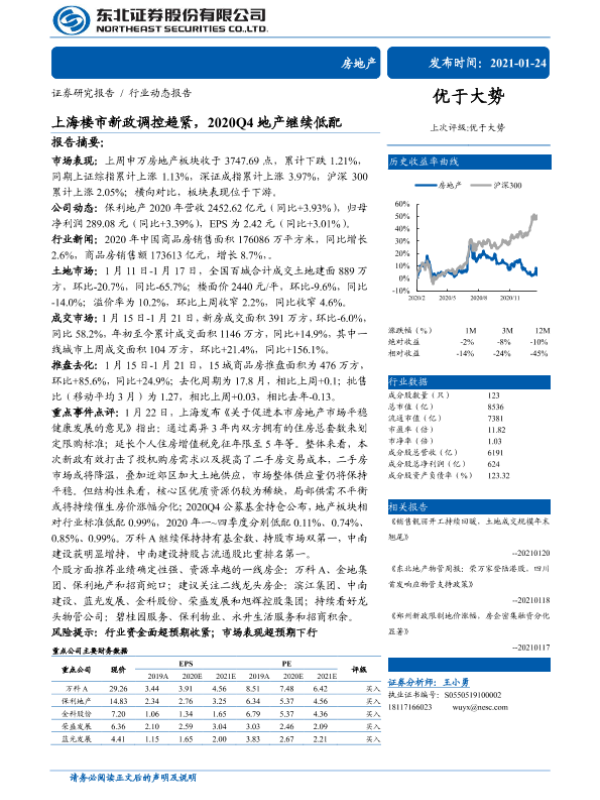 【东北证券】【20210124】上海楼市新政调控趋紧,2020Q4地产继续低配-33页
