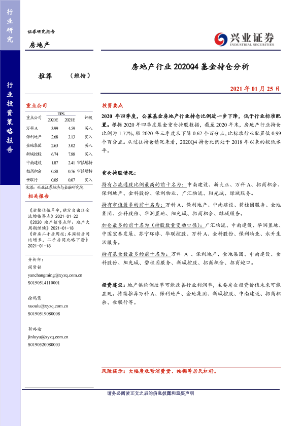【兴业证券】【20210125】房地产行业2020Q4基金持仓分析-4页