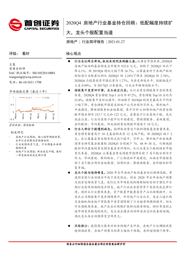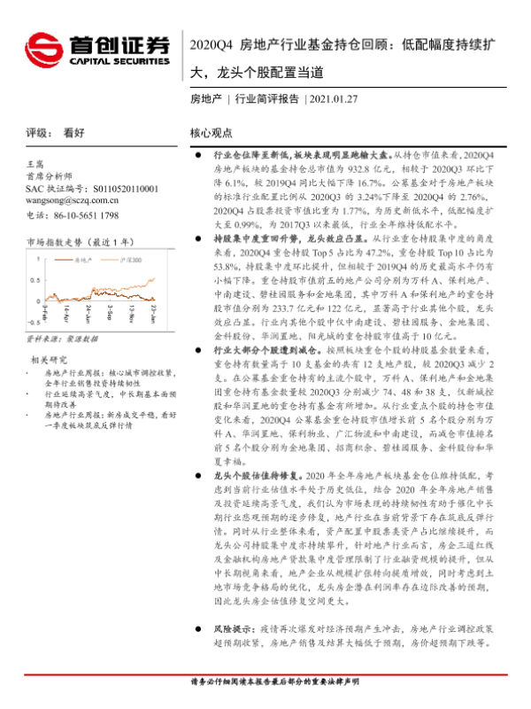 【首创证券】【20210127】2020Q4房地产行业基金持仓回顾:低配幅度持续扩大,龙头个股配置当道-6页