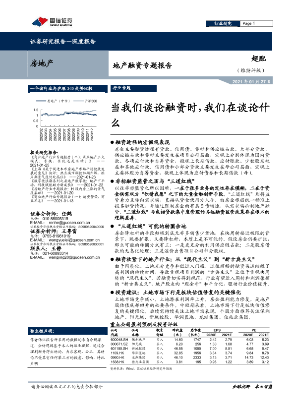 三道红线 地产股估值 房地产融资 融资监管 行业趋势