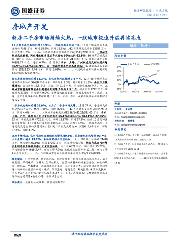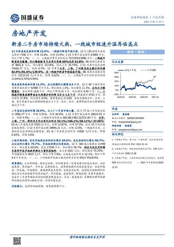 【国盛证券】【20210127】房地产开发行业月报:新房二手房市场持续火热,一线城市极速升温再临高点-24页