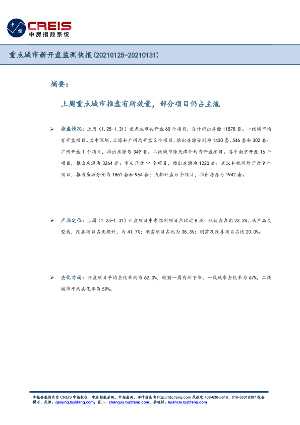 【中指研究院】【20210131】重点城市新开盘监测快报-4页