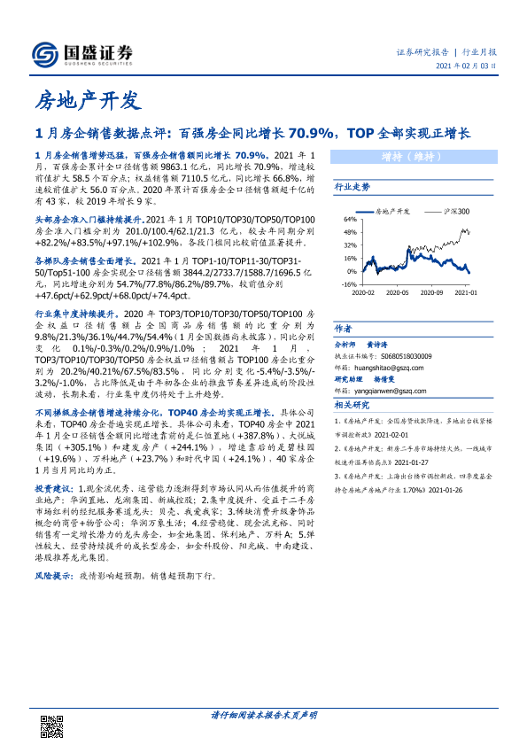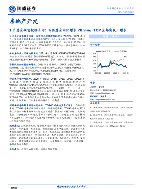【国盛证券】【20210203】1月房企销售数据点评:百强房企同比增长70.9%,TOP全部实现正增长-7页
