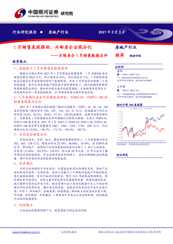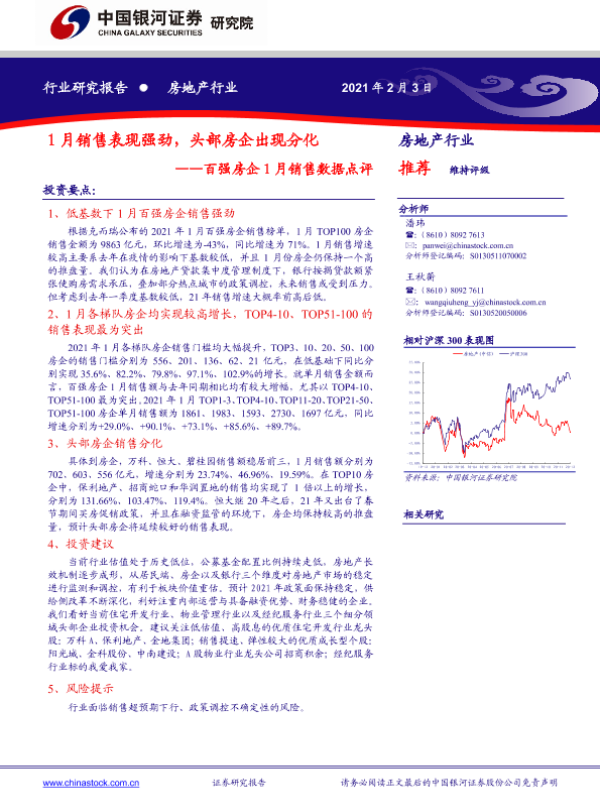【银河证券】【20210203】百强房企1月销售数据点评:1月销售表现强劲,头部房企出现分化-4页