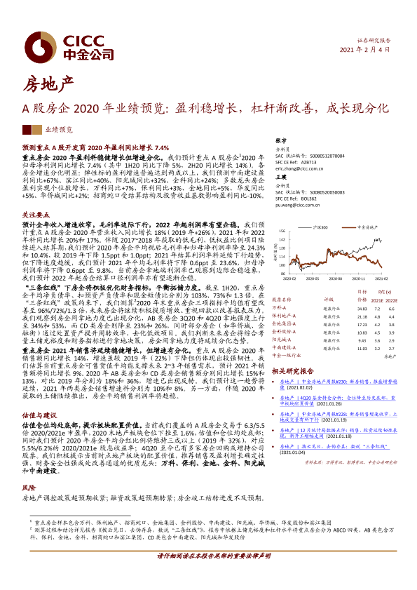 【中金公司】【20210204】A股房企2020年业绩预览:盈利稳增长,杠杆渐改善,成长现分化-13页