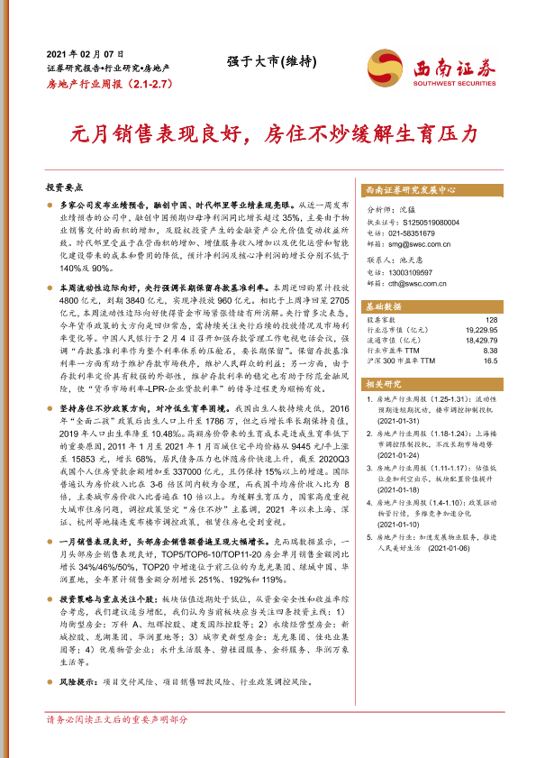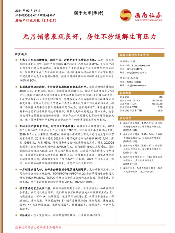 【西南证券】【20210207】元月销售表现良好,房住不炒缓解生育压力-15页