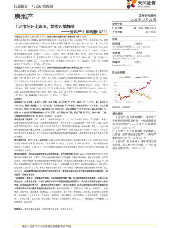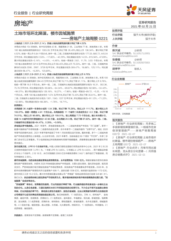 【天风证券】【20210221】房地产土地周报:土地市场环比降温,楼市因城施策-9页