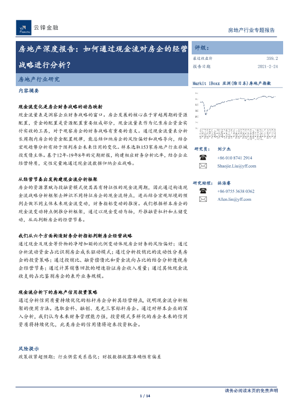 【云锋证券公司】【20210224】房地产深度报告:如何通过现金流对房企的经营战略进行分析?-14页