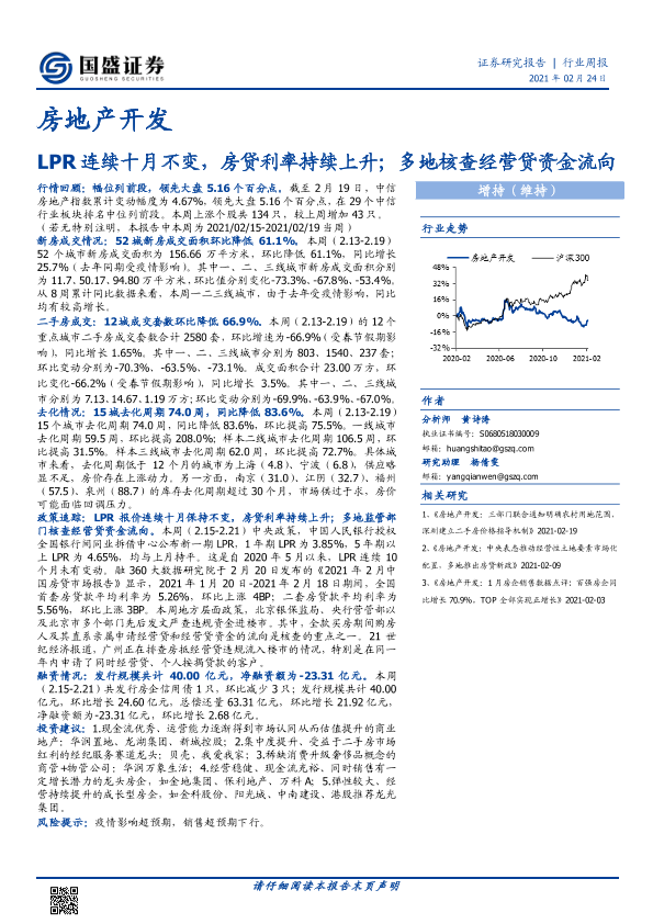 【国盛证券】【20210224】LPR连续十月不变,房贷利率持续上升;多地核查经营贷资金流向-20页