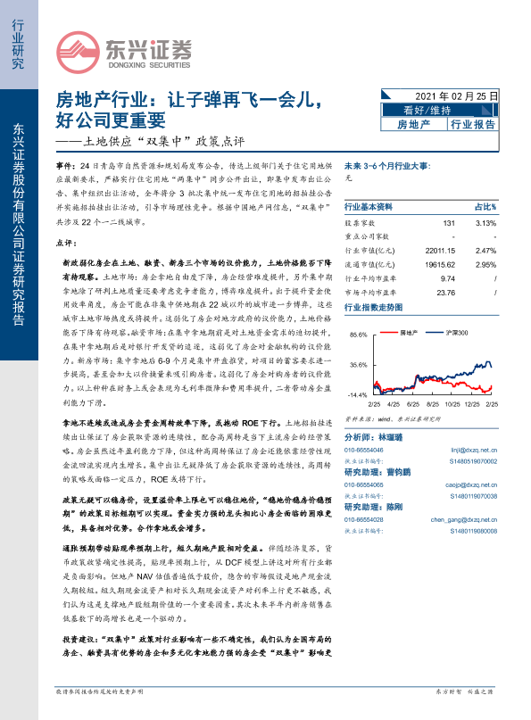 【东兴证券】【20210225】房地产行业土地供应“双集中”政策点评:让子弹再飞一会儿,好公司更重要-5页