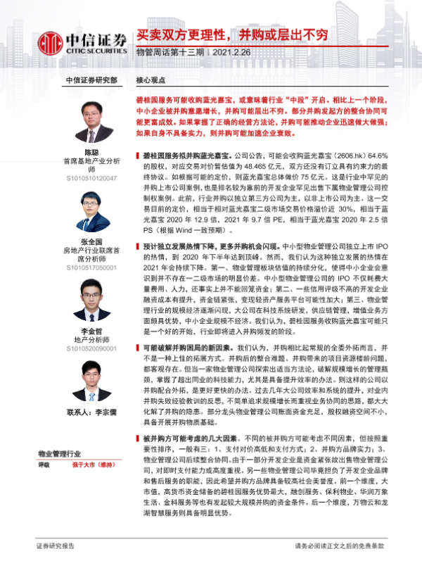 【中信证券】【20210226】物管周话第十三期:买卖双方更理性,并购或层出不穷-7页