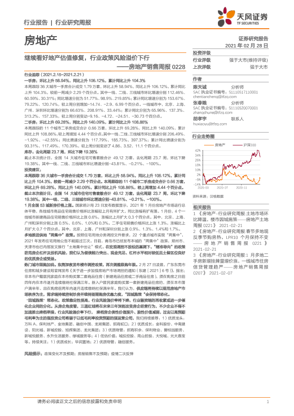 【天风证券】【20210228】继续看好地产估值修复,行业政策风险溢价下行-16页