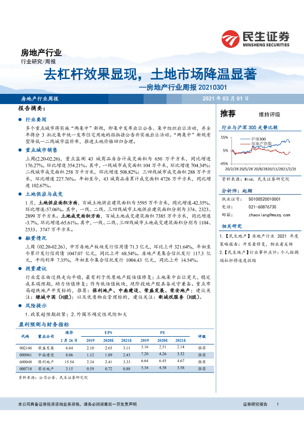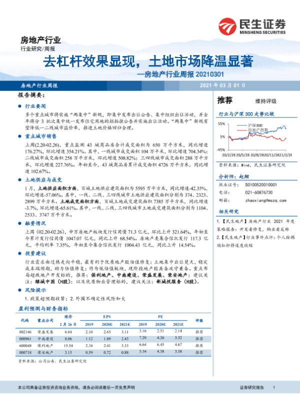 【民生证券】【20210301】房地产行业周报:去杠杆效果显现,土地市场降温显著-14页