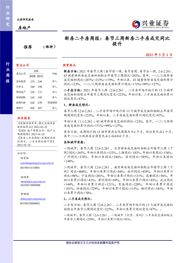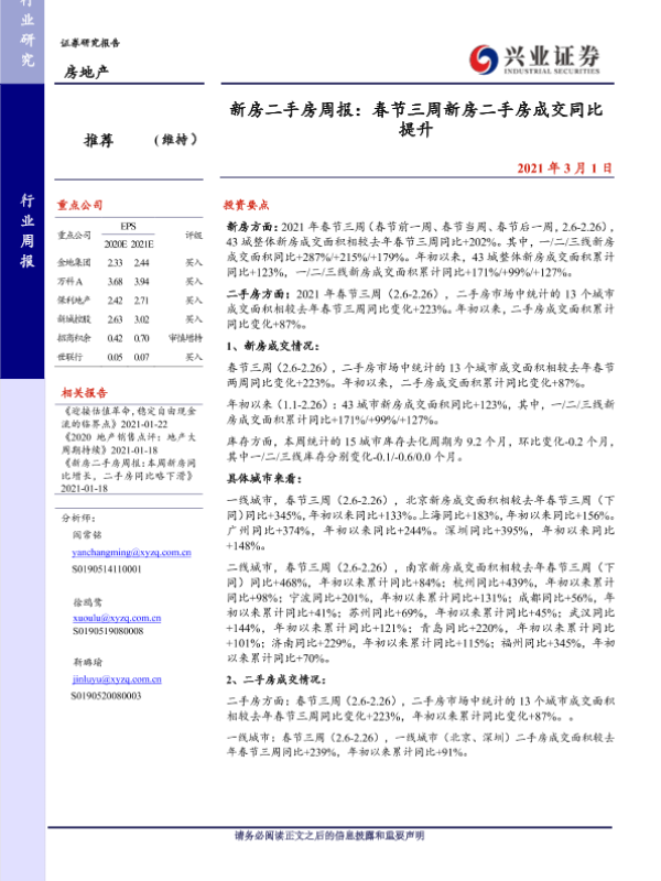 【兴业证券】【20210301】新房二手房周报:春节三周新房二手房成交同比提升-28页